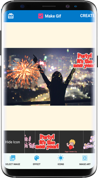 さらに、このアプリには、愛のメッセージを含む組み込みのアイコンセットや、使用できる興味深いおかしなアイコンが数多く含まれています。写真エディターは使いやすく、効果とアイコンを選択してCREATEボタンを押すだけです。写真には輝く効果があるショートビデオが作成されます。"make gif"オプションをチェックすると、興味深いgifアニメーションを作成することができます。全体的に、写真効果FXは、手間をかけずに写真に生命を吹き込みたい人にとって素晴らしいアプリです。